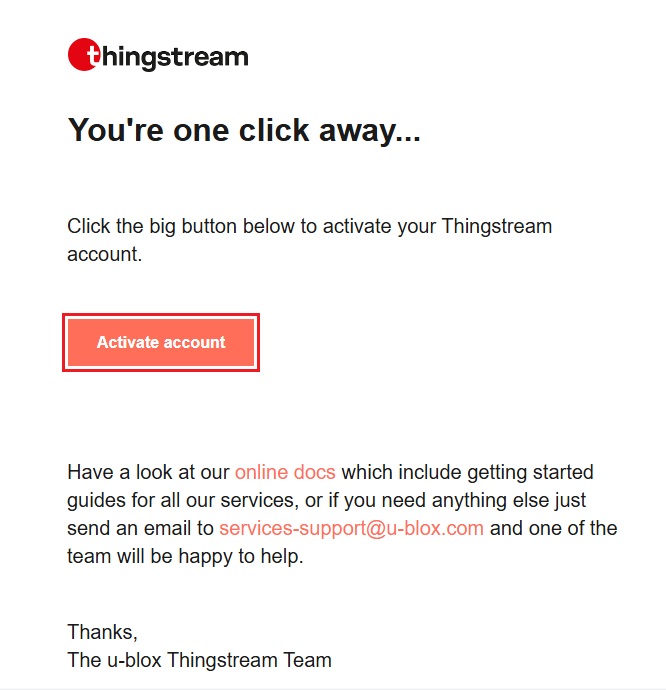 - Ako želite isprobati PointPerfect Flex usluga korekcije, samo uključite u svoju narudžbu ArduSimple Besplatna 30-dnevna probna verzija PointPerfect, besplatno je. Primit ćete e-poruku za izradu Thingstream računa. Pritisnite Aktivacija probnog razdoblja.