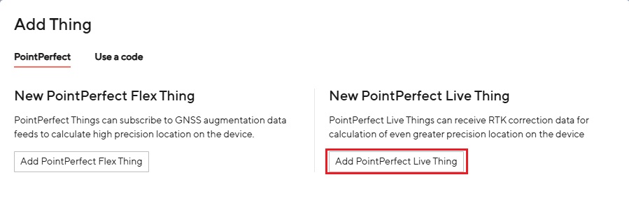- Idi na Kartica PointPerfect i pritisnite Dodaj PointPerfect Live Thing.