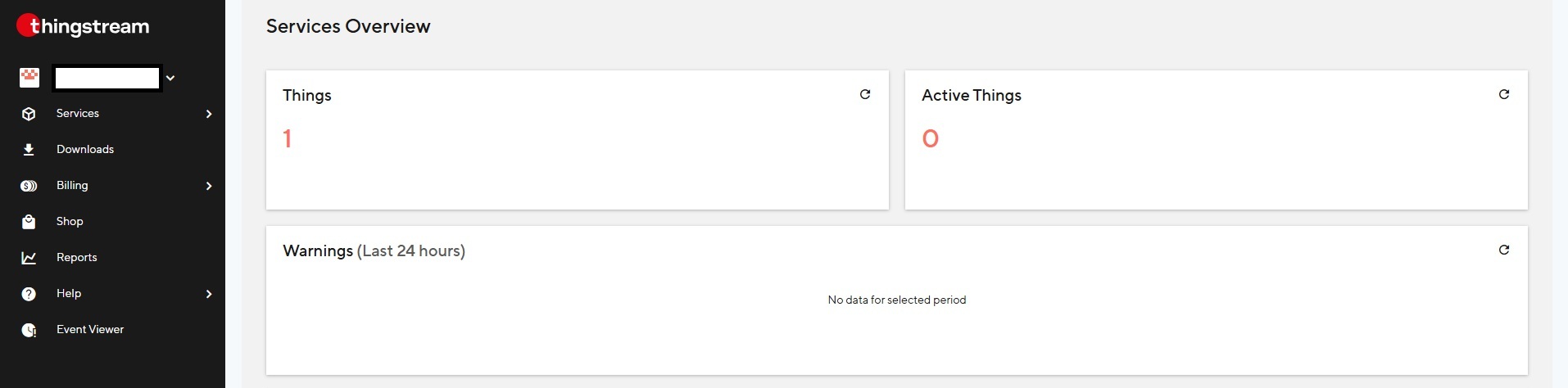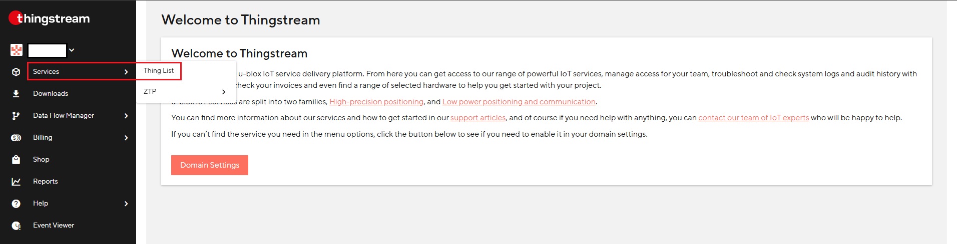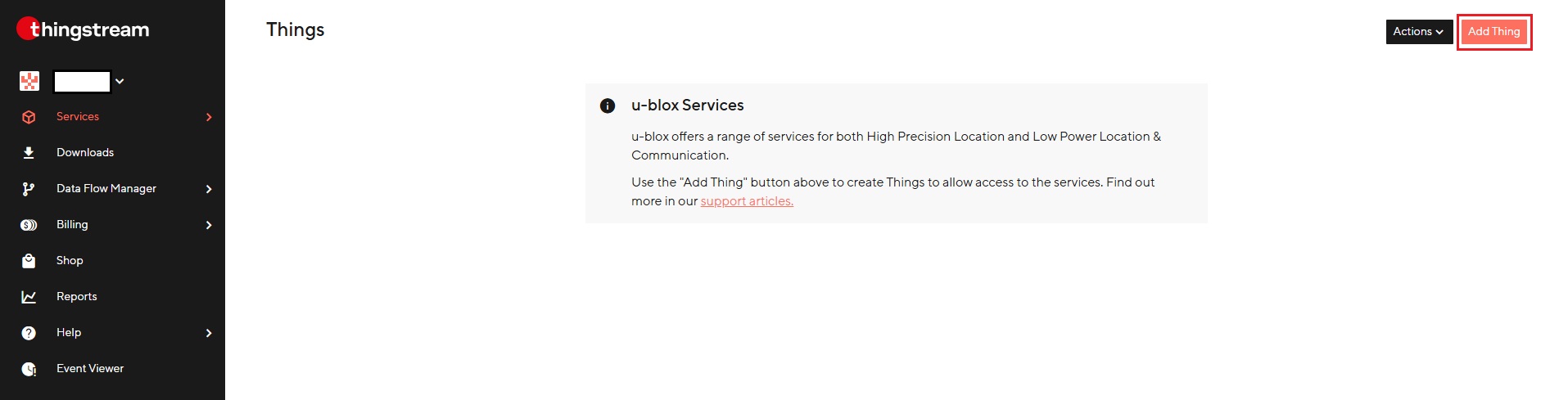 - Sada ste prijavljeni u u-blox Platforma Thingstream.